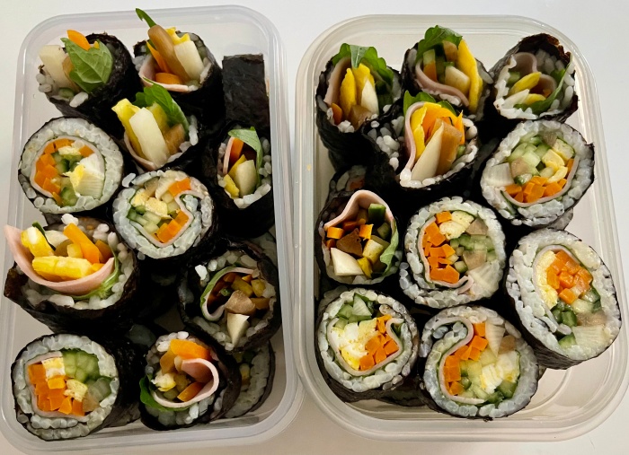 우엉과 잠봉을 넣고 만 나의 김밥. 역시 내 김밥이 최고다ㅋ