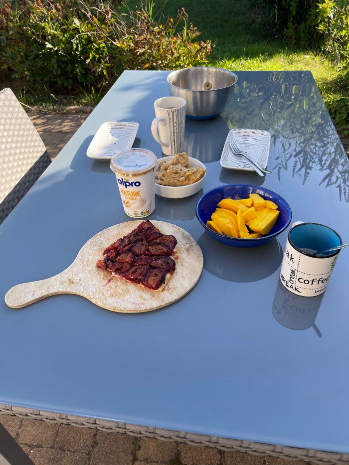 몇 개 따서 먹다가 남은 퀘치는 몽땅 수확해서 버거씨가 타르트를 구워주었다.