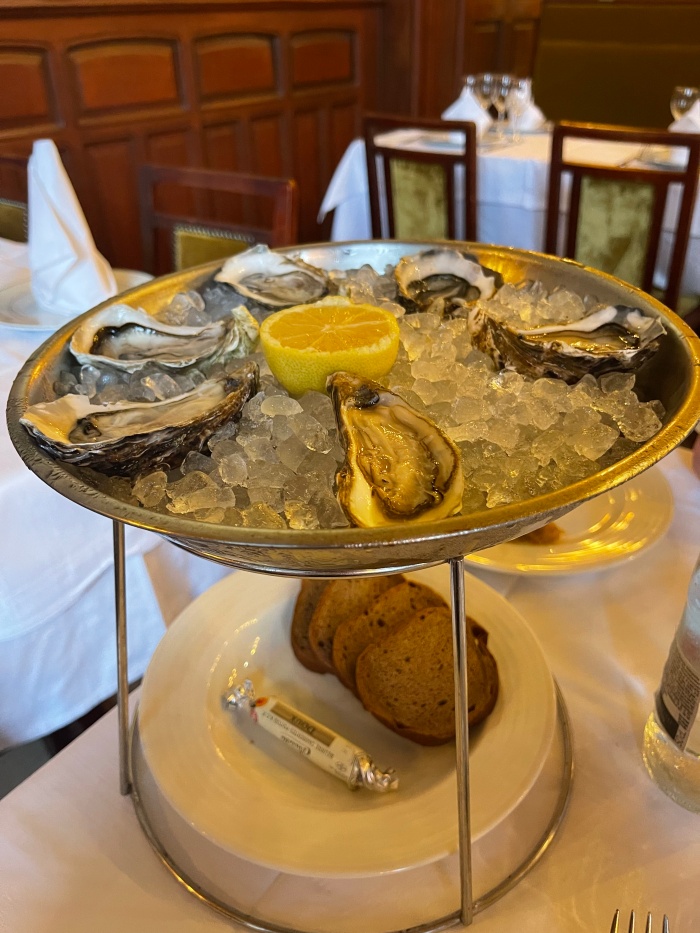 서로 다른 엉트레를 시켜서 둘이 나눠먹기로 하고 생굴이랑 푸아그라를 각각 시켰다.