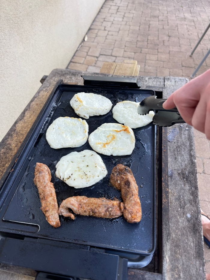 양념에 재운 오리필레랑 무슨(?) 생소한 이름의 치즈를 구워주는 버거씨.