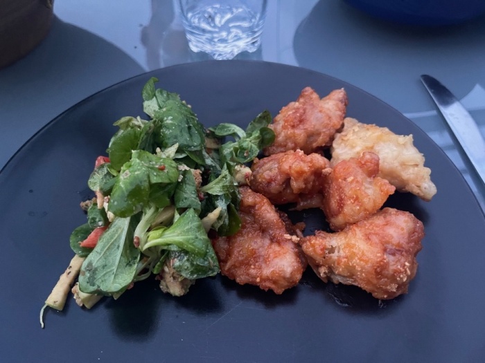 정말 맛있게 잘 먹었다. 치킨무랑 양배추 샐러드가 더 잘 어울렸겠지만 로제와인과 샐러드도 나쁘지 않았다.