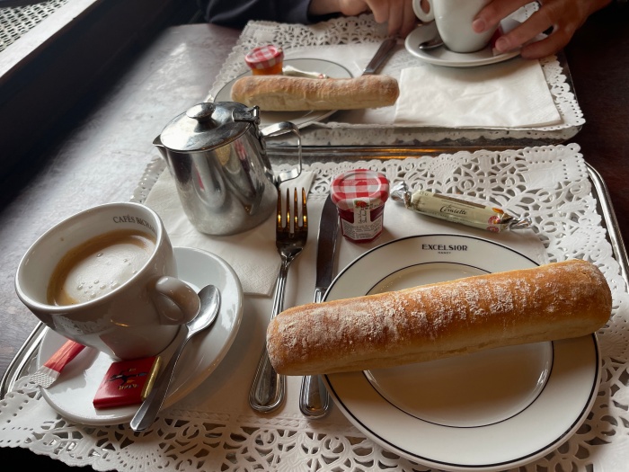 간단하게라도 아침을 몇 번 차려준 적이 있는데 우리집 부엌이 좁아서 너무 고생스러워 보였던가보다. 그 후로부터는 그냥 나가서 먹자고 말하는 버거씨. 보통 스타니슬라스 광장 테라스에서 먹곤 하는데 이번에는 버거씨가 전날부터 엑셀시어(Excelsior)에 가서 아침을 먹자고 말했다. 지난번 저녁식사가 마음에 들었던가보다. 엑셀시어의 팬이 되었네.