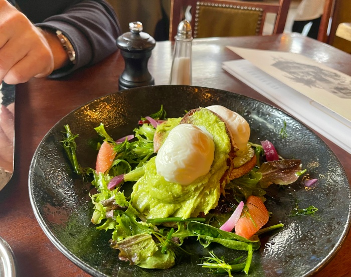 잠시 후 나온 아보카도 샌드위치. 수란이랑 샐러드가 함께 나온다.