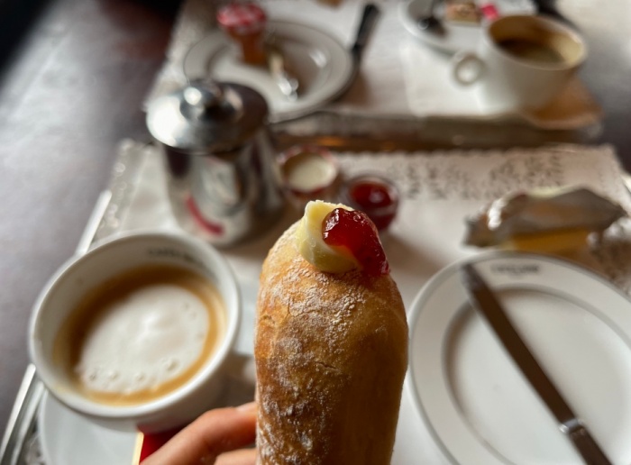 아침 식사 메뉴에도 여러가지가 있는데 일단 그 중에서 가장 간단하게 커피, 빵, 잼, 버터 구성을 각각 주문했다.