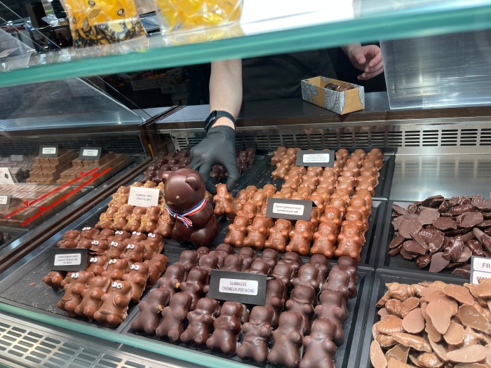 처음에는 샴페인을 사려고 했는데 나중에 생각을 바꿔서 디저트를 사기로 했다. 왜냐면 우리 시장에 굉장히 맛있는 쇼콜라트리가 있기 때문이다!