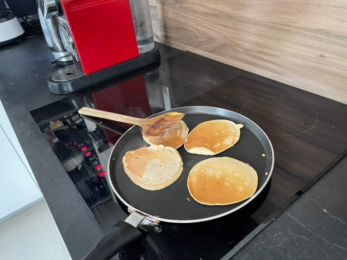 버거씨는 오늘도 바나나 팬케이크를 구웠다.