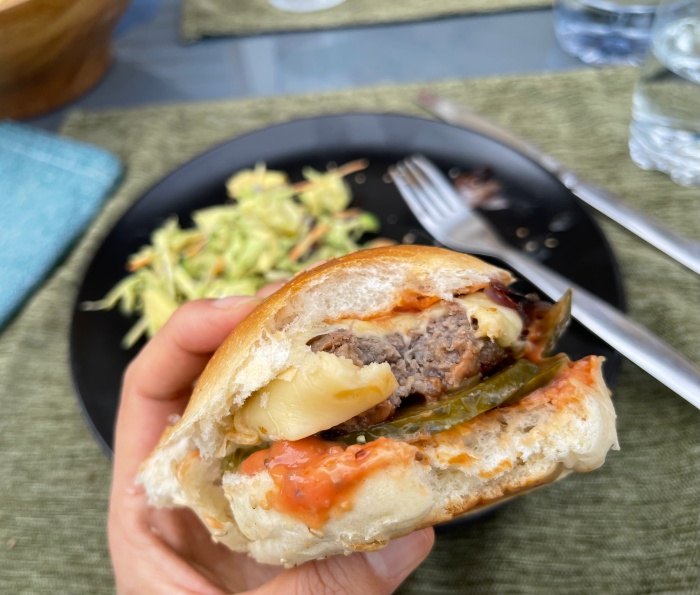 "오늘 햄버거 진짜 맛있었지? 나 좀 뿌듯했어."