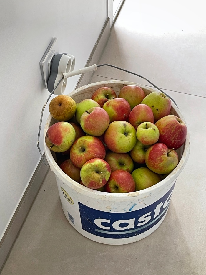 오늘의 샐러드에는 정원에서 수확한 사과랑 배가 듬뿍 들어갔다.