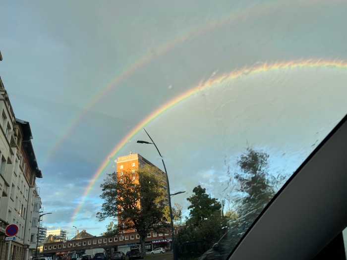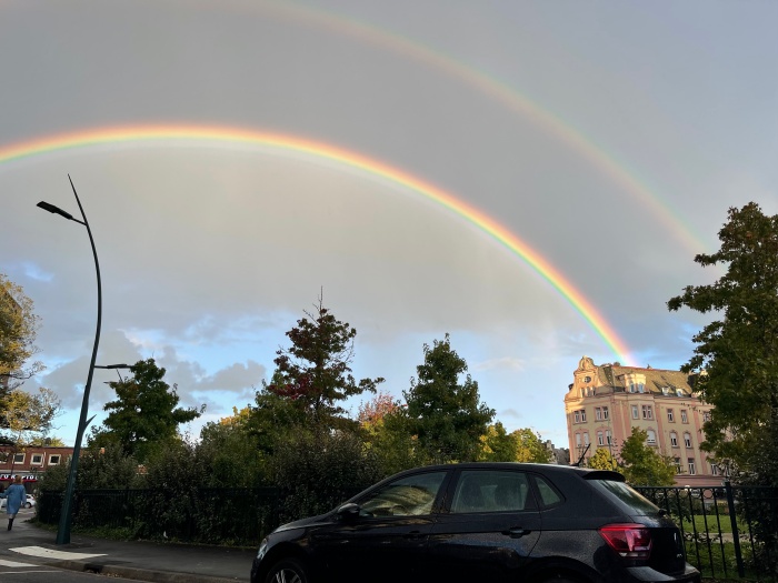 무지개가 너무 커서 한 화면에 담기도 어려웠다. 줌을 땡겨 찍으니 그때의 웅장함이 사라지네. 진짜 크고 예뻤는데!!