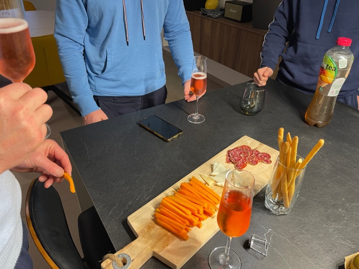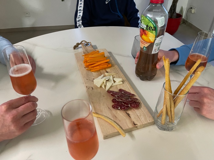 우리는 다같이 건배도 하고 소소한 아페로 파티를 가졌다. 그 후에는 버거씨가 닭고기 파스타를 해 줬는데 그건 사진 찍는걸 깜빡했네... ;; 샴페인 두잔에 기분좋게 알딸딸해졌다.
