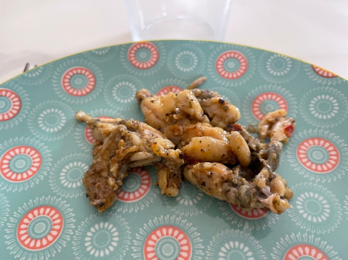 처음에 비주얼에 쇼크를 먹었던 기억은 싸그리 잊고 손가락을 쪽쪽 빨면서 맛나게 발라 먹었다. 개구리는 당연한듯이 손가락으로 발라먹는건가보다. 레스토랑에서 개구리를 먹을때도 다들 양손으로 쪽쪽거리면서 먹더라. 나는 딱 한손, 엄지+검지만 사용해도 충분하던뎅...