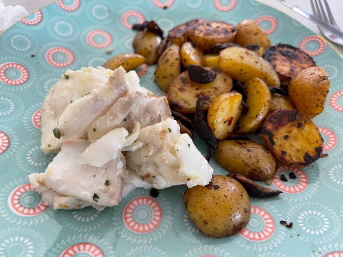 오래 오래 정성껏 익힌 감자는 비록 좀 설익었지만ㅋㅋ (감자랑 같이 넣은 표고버섯은 새카매져서 흔적도 안보이네ㅋ) 생선은 정말 연하고 맛있었다! 무엇보다 버거씨의 정성과 사랑이 가득 느껴졌다. (다음번엔 감자는 내가 해야겠다...)