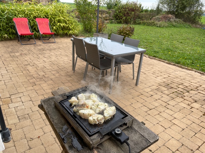 엉트레(전채요리)로 우리가 개구리 볶음을 맛나게 먹고 있을때 버거씨는 우리가 먹을 메인 요리를 또 분주하게 준비하고 있었다.