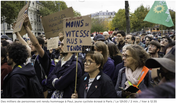 아이러니하게도 사망한 폴 배리라는 이 피해자는 도시내에서 안전하게 자전거를 탈 수 있는 권리를 위해 누구보다 열심히 싸워온 유명한 활동가라고 한다. 파리를 비롯해 프랑스 전국 대도시들에서 폴 배리를 추모하는 집회가 이어지고 있는 중이라고 한다.
