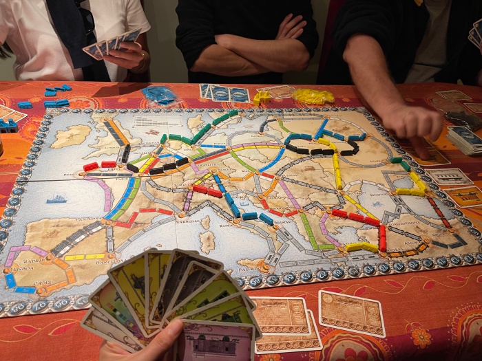 각자 주어진 목적지를 향해 더 많은 철로를 건설하는 사람이 이기는 게임이다. 그런데 지명이 독일어로 돼 있어서 생소한 이름이 너무 많았다. 일부는 어떻게 읽는지도 모르겠음ㅋ
