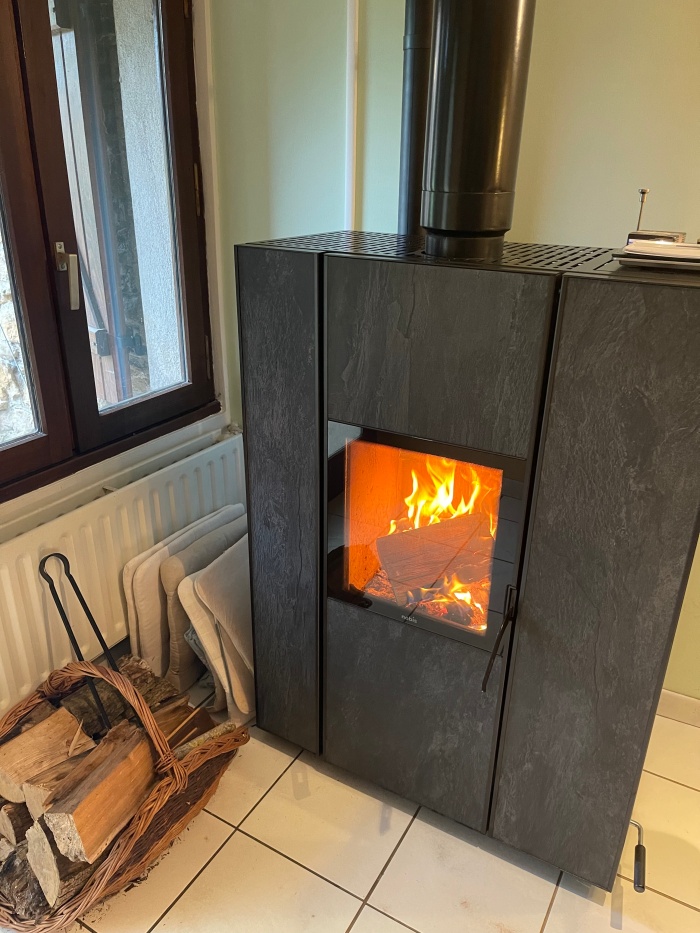 알마네 거실에 새로 들인 벽난로 속 장작들이 따뜻하게 타오르고 있었다. 2층에도 벽난로가 하나 더 있다. 태양열까지 사용하는 이 집에는 전기세 걱정이 없겠네.