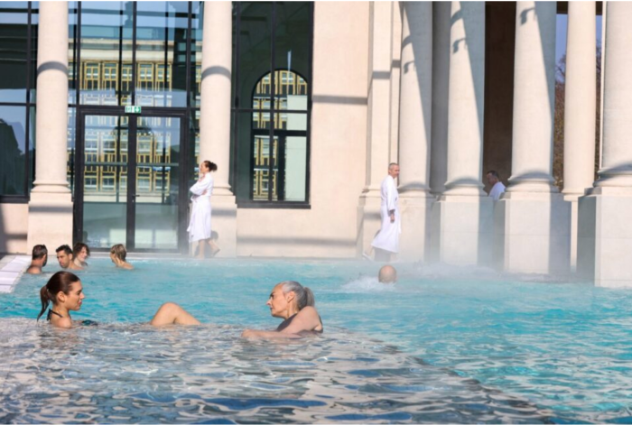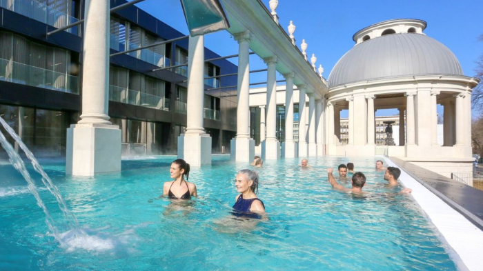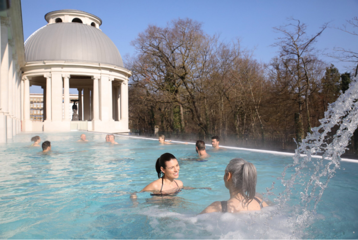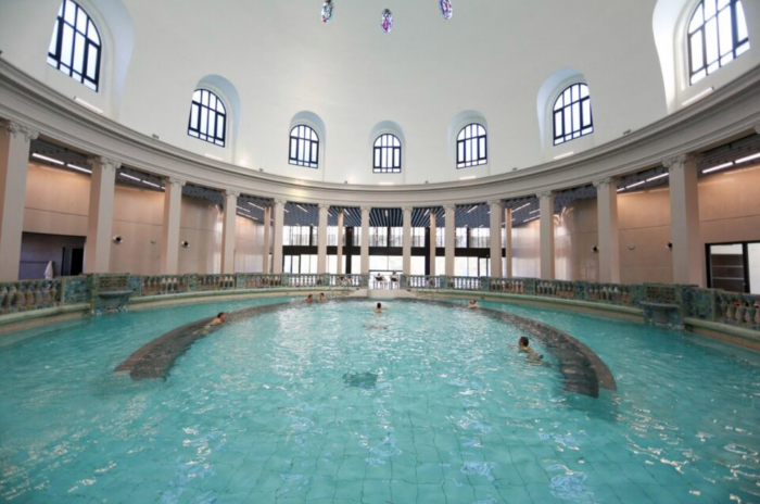 원래 이 건물은 유서깊은(?) 수영장이었는데 최근 몇년전에 온천스파호텔로 공사를 새로 했다. 돔지붕이랑 기둥은 그대로 보존하느라 공사에 심혈을 기울인 모양이다. 인터넷 사이트 소개글을 보니 무려 1913년에 지어진 건물이라고 한다! 2020년에는 역사 기념물로 지정이 되었다고...