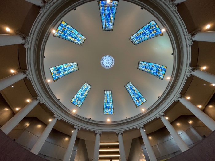 야외에서만 보던 푸른 돔은 실내에서 올려봐도 멋지다. 푸른색 스텐인드글라스가 참 폼난다.