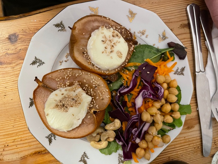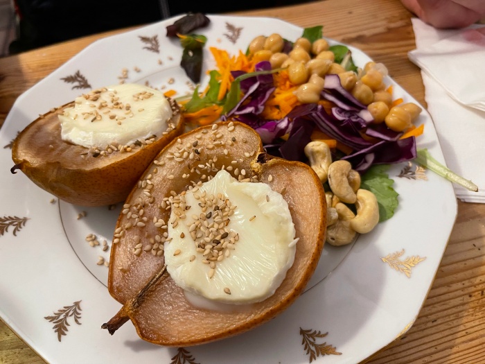버거씨는 사장님이 자신있게 추천한 배 샐러드를 주문했다. 버거씨가 잘라줘서 한 입 먹어봤는데... 염소치즈의 강한 향이랑 과일향의 조합은 영 나랑 안맞는다... 으엑...