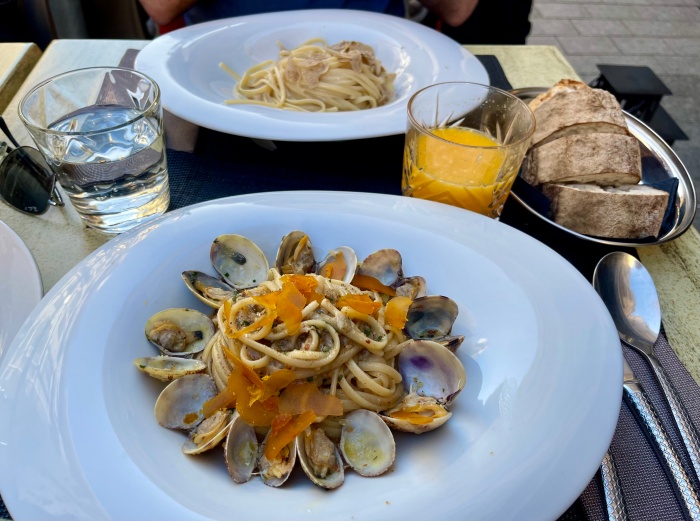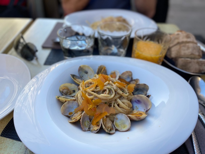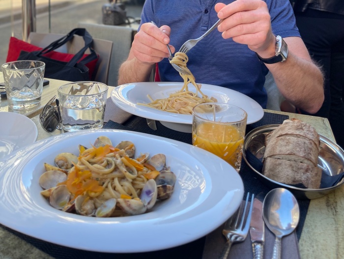 생각보다 식사가격이 비싸서 선뜻 고르지를 못하고 망설였더니 버거씨가 모나코는 원래 비싸단다. 휴가니까 먹고 싶은거 아무거나 먹으래서 봉골레 파스타를 시켰다. 링귀니 보타르가 봉골레- 구글 리뷰에 나온 사진이 엄청 맛있어 보였다. 버거씨도 똑같은걸 주문하려다가 서로 다른걸 시켜서 나눠먹자며 리조또를 골랐다.