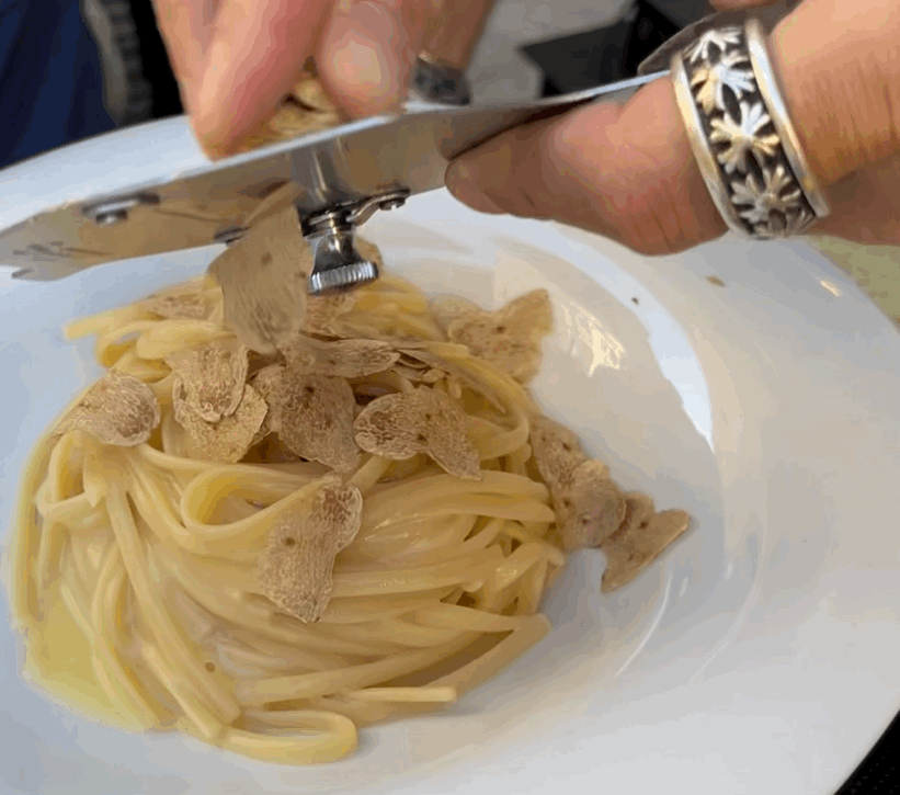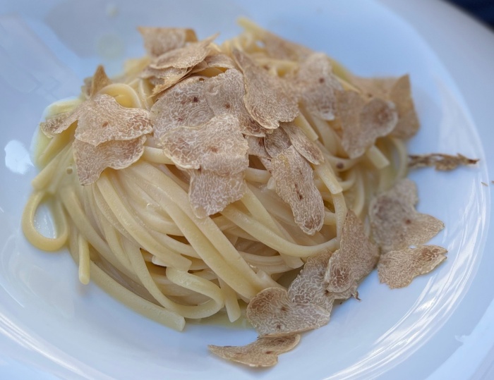 그런데 버거씨가 주문한 파스타는 그냥 아무것도 없는 흰 파스타만 덜렁 나왔다. 아무래도 귀한 트러플 향을 더 잘 느끼라고 다른 재료들의 사용은 제한을 한 모양이다. 남자 직원이 곧 그 위에다 직접 신선한 화이트 트러플을 듬뿍 갈아주었다.