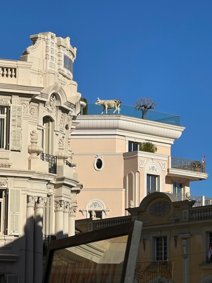 근데 저 멀리 지붕 위에 소 한마리가 있는데...?