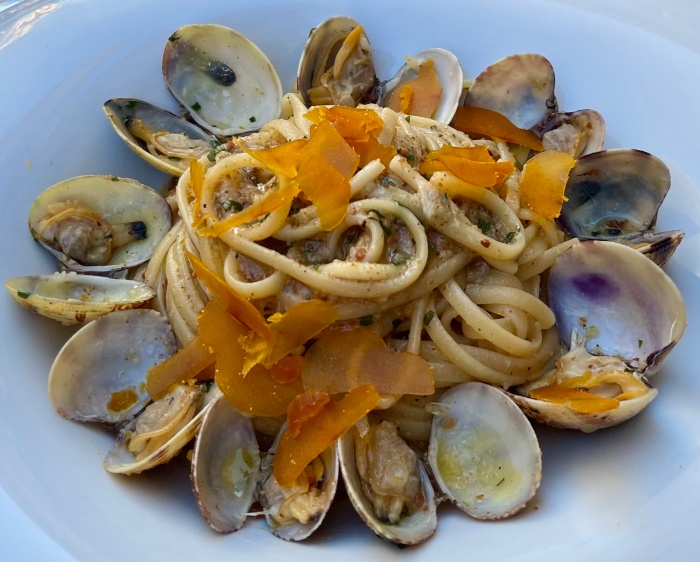 생각보다 식사가격이 비싸서 선뜻 고르지를 못하고 망설였더니 버거씨가 모나코는 원래 비싸단다. 휴가니까 먹고 싶은거 아무거나 먹으래서 봉골레 파스타를 시켰다. 링귀니 보타르가 봉골레- 구글 리뷰에 나온 사진이 엄청 맛있어 보였다. 버거씨도 똑같은걸 주문하려다가 서로 다른걸 시켜서 나눠먹자며 리조또를 골랐다.