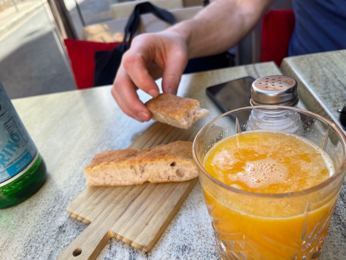알콜은 안땡기고... 물을 주문하려니 돈 아깝고... 10유로짜리 생오렌지 쥬스를 주문했다.