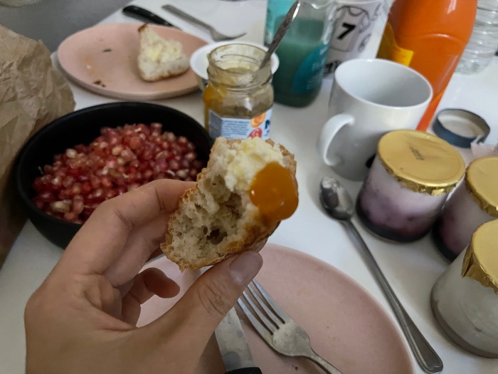 다음날 아침 우리는 이사 전 마지막 아침 식사를 차려먹었다. 이 와중에도 버거씨는 몸에 좋다며 석류를 챙겨와서 알알이 까는 정성을ㅋ