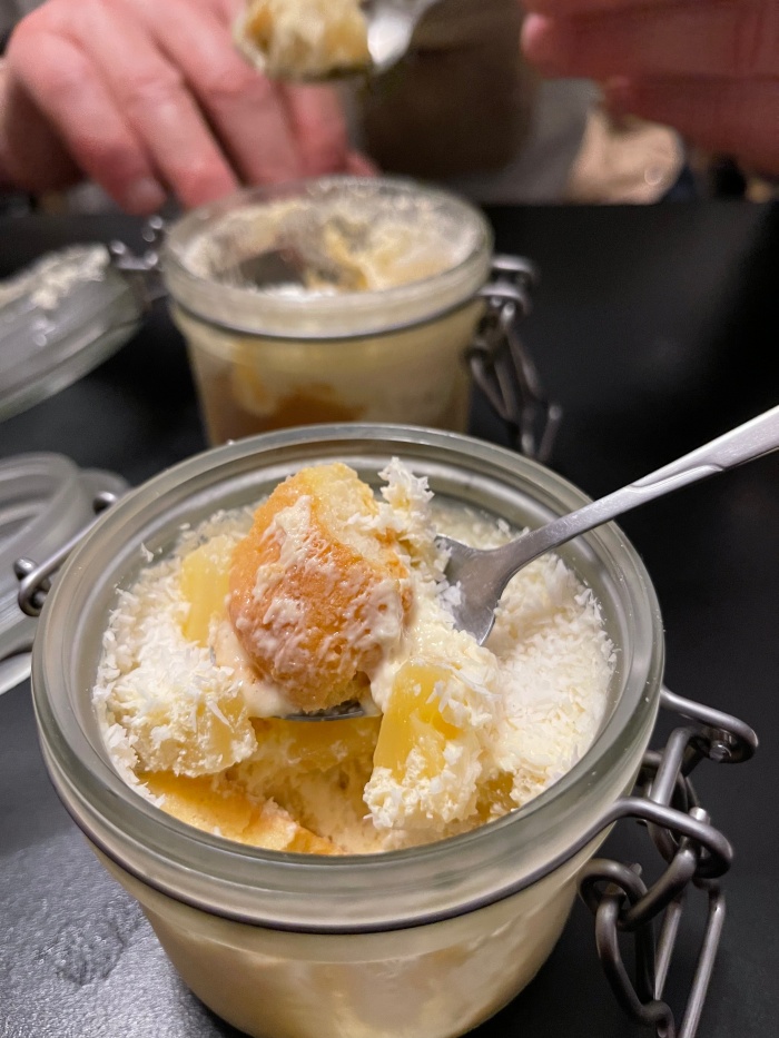 맨 위에 코코넛 가루가 뽀얗게 뿌려져있었는데 숟가락으로 들추니 안에는 층층히 쌓인 부드러운 케이크와 크림 그리고 파인애플이 나왔다. 한국식 생크림 케이크가 그리웠는데 그거랑 비슷하면서도 더 고소하고 부드러웠다. 이런거는 나 열 개도 먹을 수 있다! 대 만족!