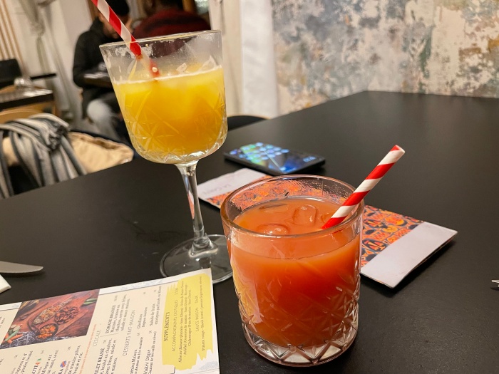 우리는 우선 무알콜 칵테일을 주문했다. 망고+구아바, 생강+파인애플? 꽤 맛있었다.