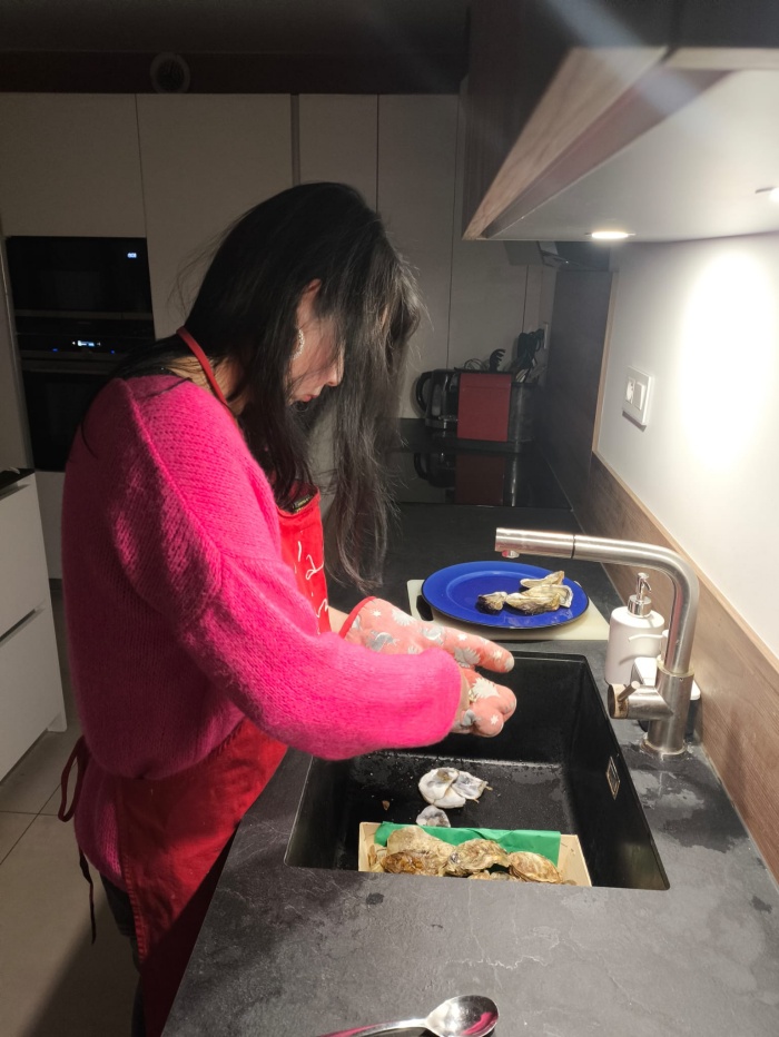 질 좋은것들로만 산 건 알겠는데... 매년 시어머니의 화려한 노엘 식사에 익숙해져 있어서 그런지 상대적으로 초라해보이네. 하지만 곧 고개를 흔들고 정신을 차렸다. 이 남자가 혼자 열심히 준비한건데 뭐든 고맙게 생각하자. 내가 도울수 있는건 열심히 돕자.