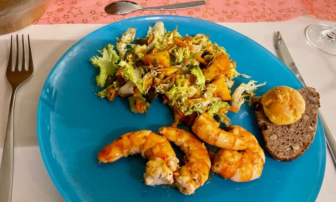 불고기 소스가 들어간 새우 구이 정말 맛있었다. 단감을 넣은 샐러드는 두 말 할 것도 없다.