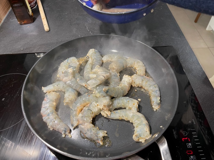 튼실한 대하의 껍질을 까고 레몬 마늘 등을 넣고 재우던 버거씨는 대하를 구울때 시판 ‘불고기 소스’를 꺼내와서 뿌렸다. 참 좋은 생각이라고 내가 칭찬해 주었다. 불고기 소스 냄새와 함께 새우가 맛있게 익어갔다.