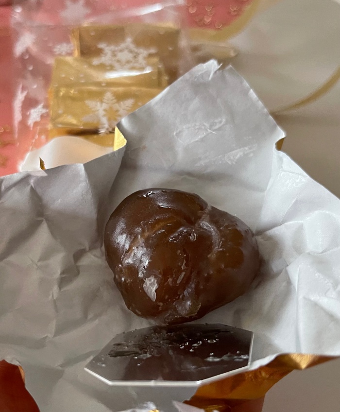 내가 사온 밤 절임도 한개씩 까먹었다. 이거 한 알에 우리 돈 삼천원이 넘는구나... 소듕하게 조금씩 잘라 먹어야지...