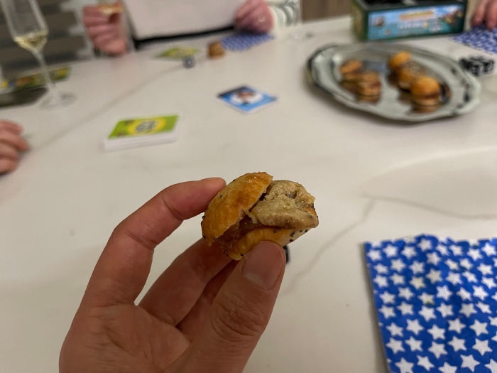 샴페인을 마시면서 보드게임을 하는 틈틈이 버거씨는 안주를 내왔다.