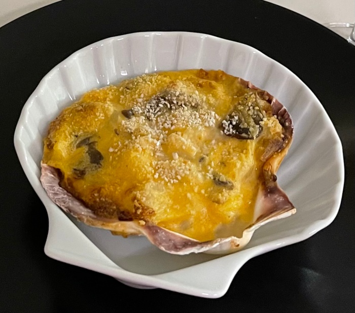 잠시 후 버거씨가 커다란 가리비를 구워왔다. 이게 오늘의 메인인가 보다. 이미 아뻬로로 배가 어느정도 부른 상태였으므로 양이 작아 보이는건 큰 문제가 되지 않았다.