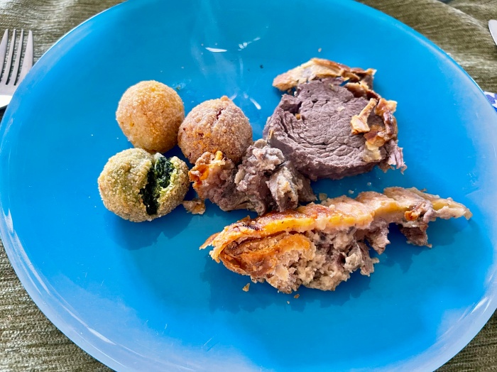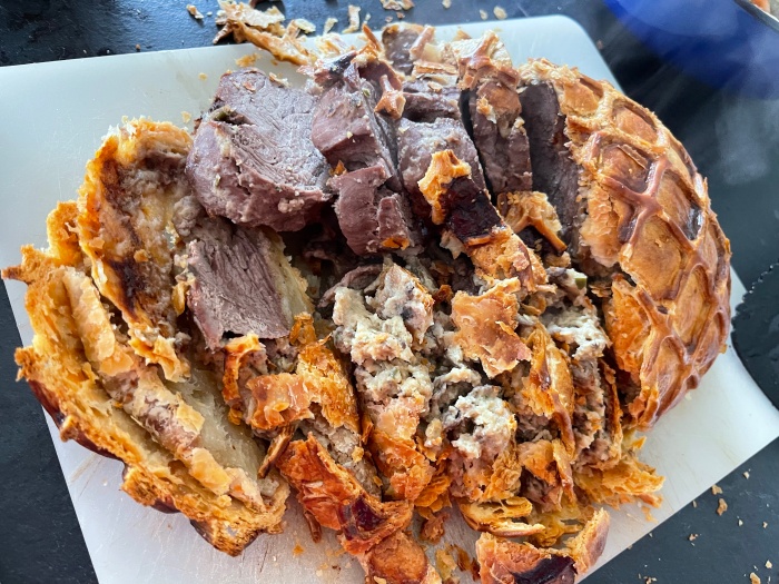 오늘 점심 메인은 미트파이였는데 오븐에서 살짝 오래 익혀서 모양이 다 부서졌다. 그래도 맛있었다.