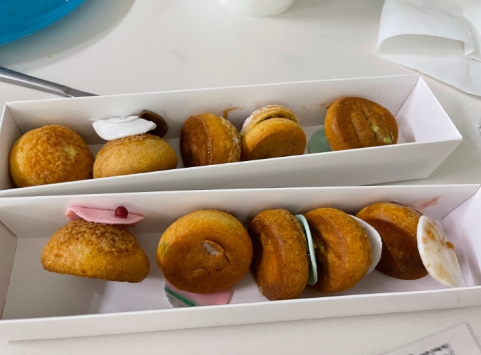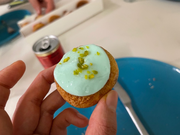 나는 무사히 모자가 붙어있는 피스타치오 슈를 하나 골라서 먹었다. 맛은 참 좋은데... 나머지 사람들은 모자없이 그냥 먹고 있었다. 이게 얼마나 예뻤는지는 아무도 못 본것이다.