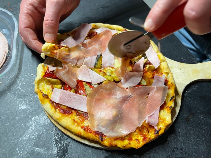 햄을 미리 넣었더니 오븐에서 익으면서 건조해지길래 햄 종류는 다 익힌 후 마지막 먹기전에 얹어주었다.