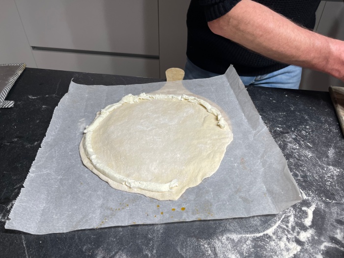 토마토소스때문에 피자도우가 눅눅해지는걸 방지하기 위해 소스를 바르기 전에 도우만 살짝 구워준 후에 소스를 발랐다. 과연 그렇게 하니까 효과가 있었다.