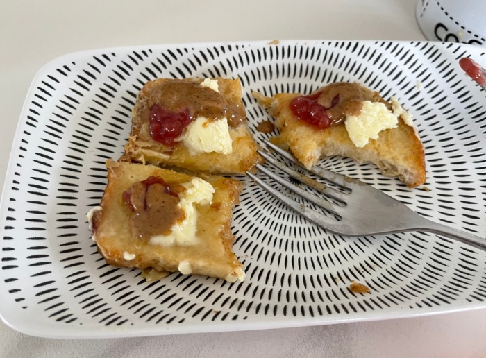 프렌치 토스트 참 맛있다. 아침 생각 별로 없었는데 잘도 넘어간다.