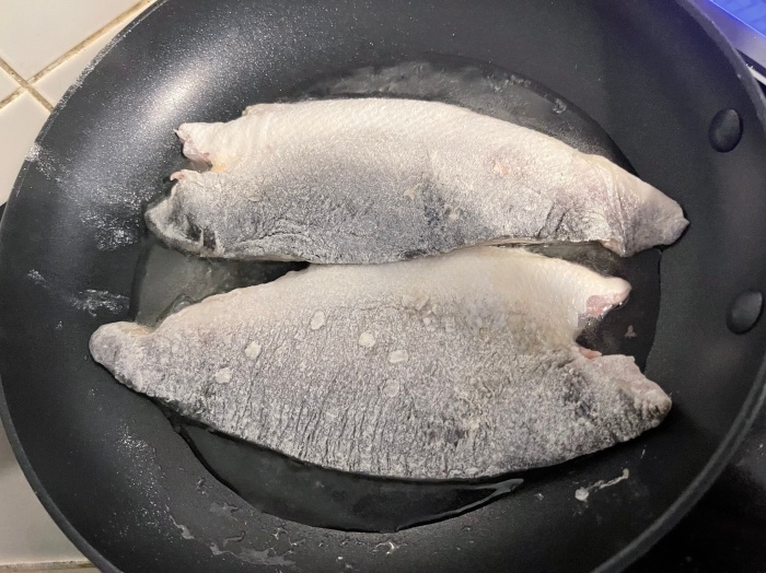 친정엄마가 하는 방식대로 밀가루를 입혀서 바삭하게 구웠다. 뜨거운 밥에 김치랑 먹는 갓구운 생선 진짜 오랜만이다.