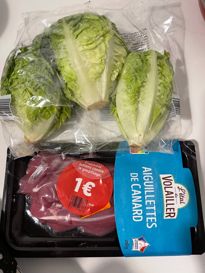 유통기한 임박한 오리 안심을 글쎄 1유로에 팔고 있는게 아닌가!? 마지막 남은 한팩을 집어 들고는 상추도 샀다.
