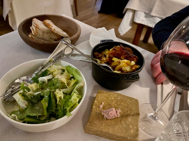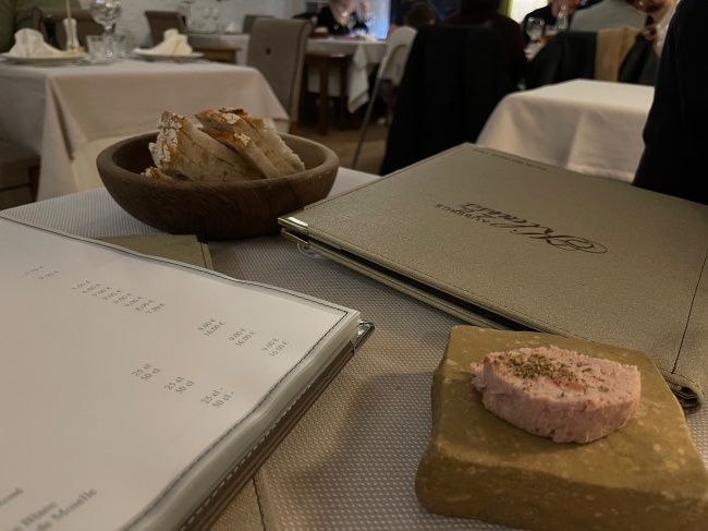 식사를 주문도 안했는데 벌써부터 빵이랑 돼지고기 빠떼를 한덩이 갖다 주었다.