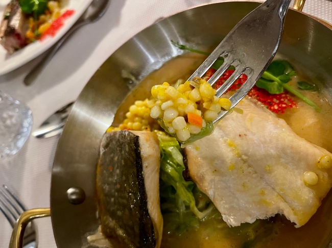생선밑에 뜨끈한 국물안에 파가 수북하게 숨어 있었는데 엄청 맛있었다. 그리고 동글동글 파스타에 짭짤한 국물이 베어서 떠먹기 좋았다.