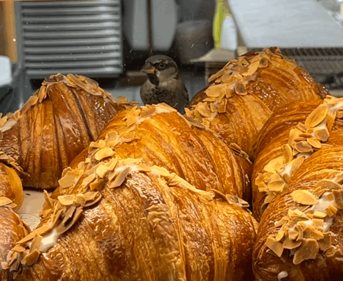SK가 계산하라고 현금을 줬지만 내 카드로 계산했다. 두 개에 3유로였다. 프랑스에 살다가 떠난 사람들은 이 빵이 눈에 밟혀서 어떻게 살아가는걸까 잠깐 생각했다. 프랑스에 살 수록 빵에 중독돼 가고 있다. (참새따윈 내 식욕을 막지 못한다. 나도 프랑스인이 다 된건가.)