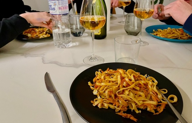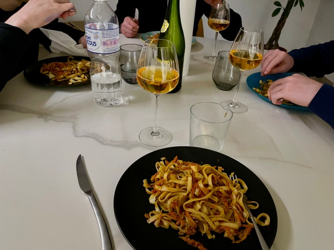 토요일 저녁 버거씨는 생선을 넣은 파스타를 만들어 주었다.