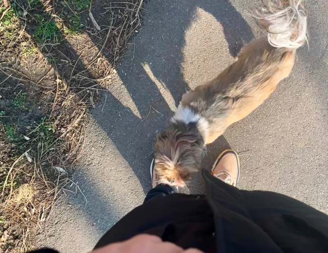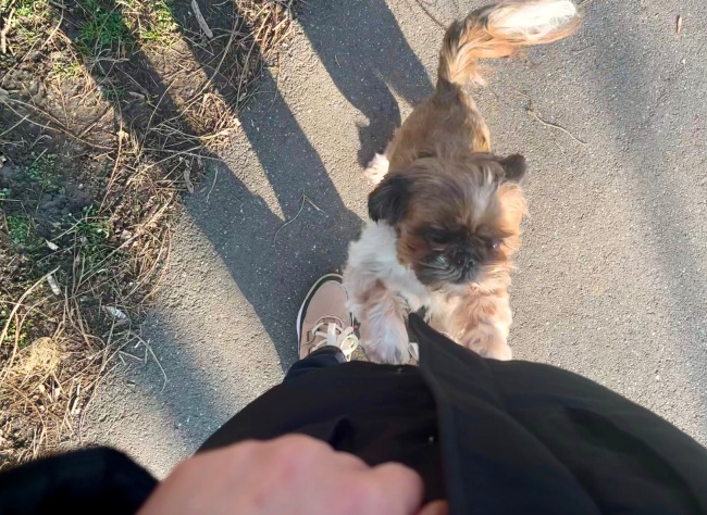 앞장서서 걷던 시츄가 갑자기 나에게 다가왔다.