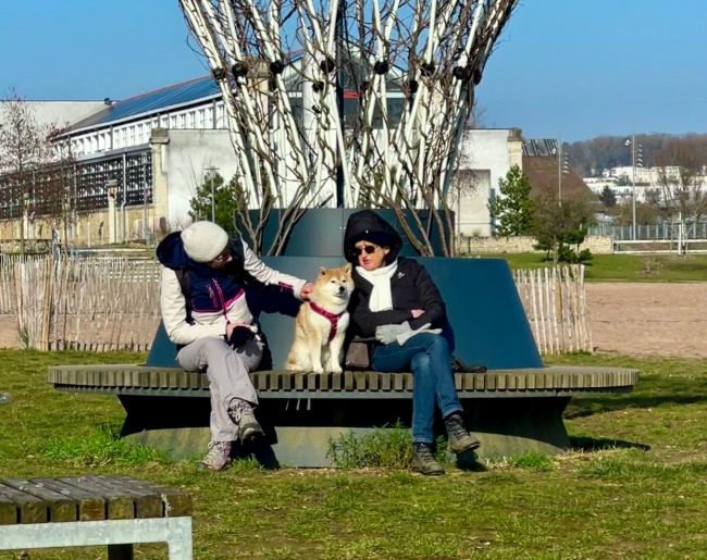 잠시 후 버거씨랑 앉아서 쉬고 있을때 옆에 주민 두사람이 시바견을 가운데 앉혀놓고 점잖다고 칭찬 세례를 하고 있었다. 시바견은 그 말을 다 알아듣는듯 듬직하게 앉아있는 모습이 재미있었다.